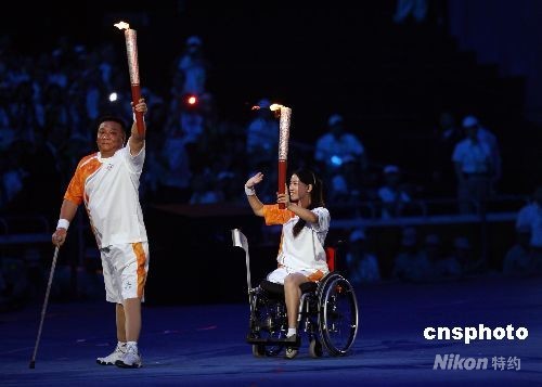 組圖:北京殘奧會開幕式上的火炬傳遞(2)
