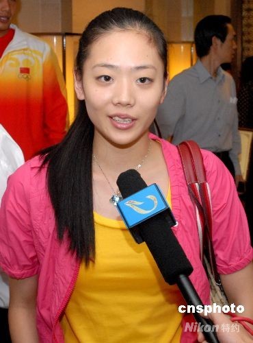 2008年9月6日,湖北省奧運軍團載譽歸來。在湖北省委、省政府為奧運健兒召開表彰大會的間隙里,世界體操名將楊威的妻子楊云,成了現(xiàn)場記者的“焦點人物”。雖然楊威和楊云已經登記結婚,但為了備戰(zhàn)北京奧運會推遲了婚期,“臥薪嘗膽”四年的楊威一舉獲得男子團體和個人全能金牌。中新社發(fā) 楚天行 攝