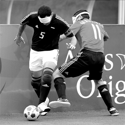 阿根廷(左)與西班牙的盲人球員在比賽中。 新華社發