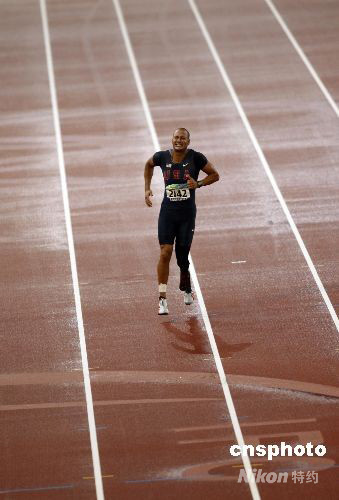 9月9日,北京殘奧會男子100米-T44決賽中,美國選手馬龍·雪利在中途不慎摔倒,他爬起后獨自完成了比賽,獲得賽場一片掌聲。 中新社發 杜洋 攝