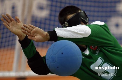 9月14日,北京殘奧會盲人門球男子金牌爭奪戰(zhàn)中,中國隊9:8戰(zhàn)勝立陶宛獲得冠軍。中新社發(fā) 杜洋 攝