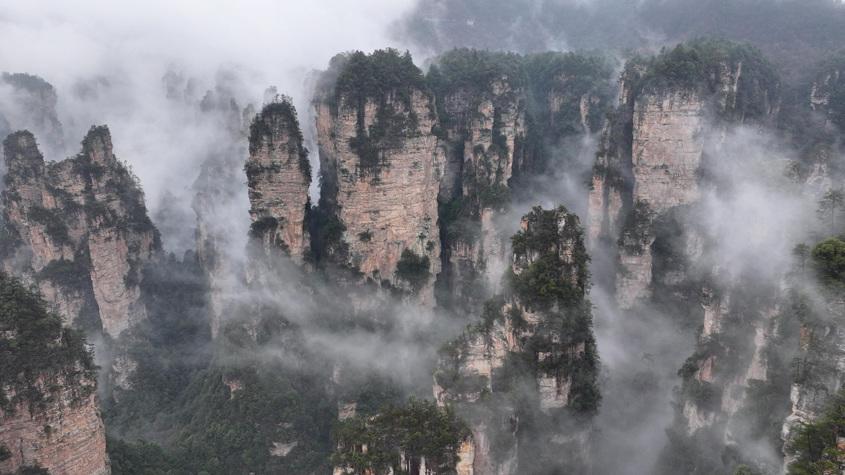 湖南張家界現(xiàn)云海景觀 峰林若隱若現(xiàn)如仙境