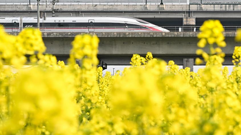 杭州“CBD花田”盛放 “開往春天的列車”吸引民眾