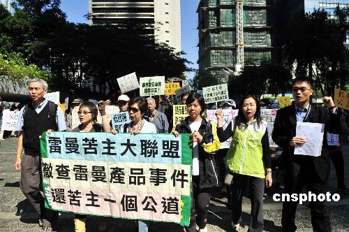 ·圖:雷曼苦主立法會(huì)門(mén)外表達(dá)訴求