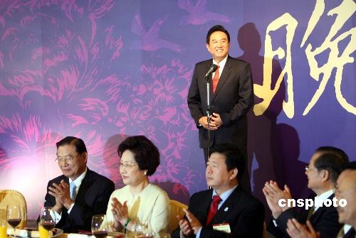 ·圖:陳云林在;鶗䴕g迎宴會上致辭感謝