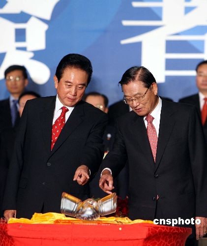 ·圖:江丙坤贈陳云林"和平協商 共創雙贏"匾額
