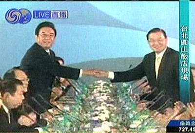 ·圖:會談間隙陳云林江丙坤互相倒水顯溫情