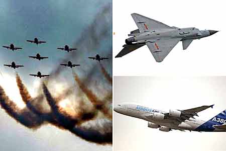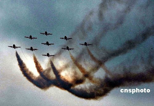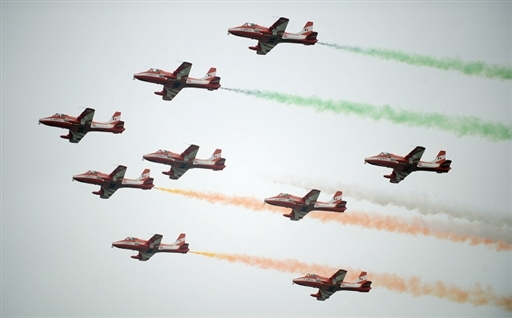 ·印度"陽光"特技飛行隊航展上進行特技表演