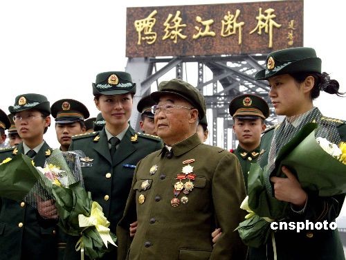 ·志愿軍老戰(zhàn)士鴨綠江邊紀(jì)念抗美援朝58周年
