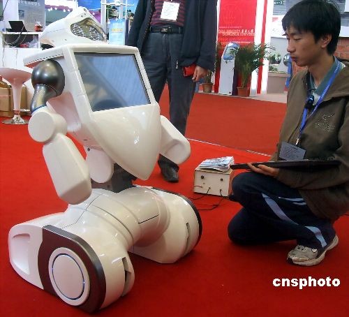 ·圖:復(fù)旦大學(xué)展示研發(fā)的機器人“復(fù)娃”