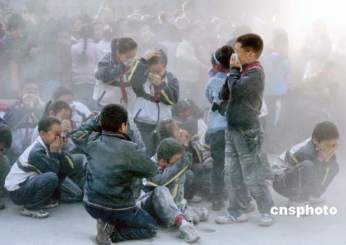 ·圖:烏魯木齊小學(xué)舉行消防演習(xí)