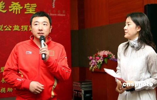 ·圖:奧運冠軍楊凌向宏志班學生提供愛心捐贈