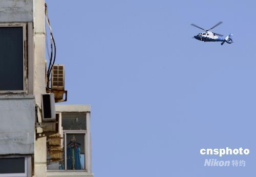 ·圖:直升機盤旋北京上空實時直播奧運男子馬拉松賽事