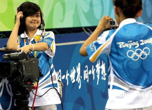 ·圖:北京奧運會志愿者依依惜別籃球館