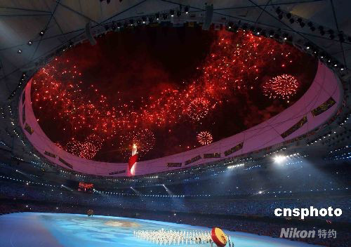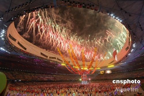 ·圖:北京奧運會閉幕式開始 煙花映照“鳥巢”