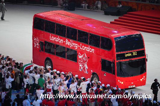 ·圖:倫敦巴士開進閉幕式會場