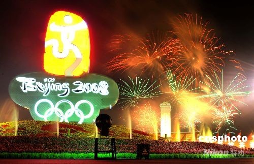 ·圖:天安門廣場燃放煙花慶祝奧運會閉幕