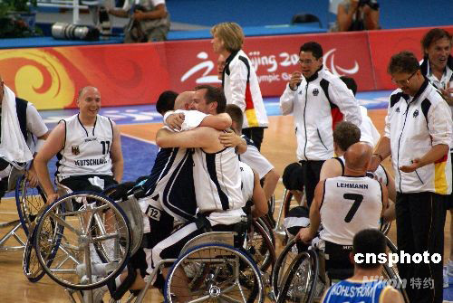 ·男子輪椅籃球德國隊"輪椅擁抱"慶勝利