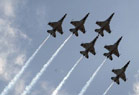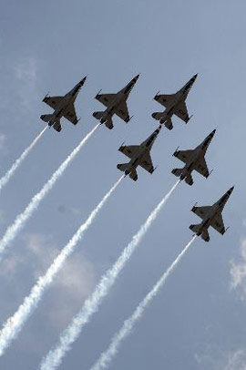 當(dāng)?shù)貢r(shí)間5月4日,位于美國(guó)南加州河濱縣的一個(gè)美國(guó)空軍預(yù)備基地舉行規(guī)模盛大的航空展和飛行表演。C-17A全球霸王運(yùn)輸機(jī)、C-5銀河運(yùn)輸機(jī)等空中巨無(wú)霸和F-22猛禽戰(zhàn)機(jī)等美軍先進(jìn)軍用飛機(jī)亮相展覽,F(xiàn)-22戰(zhàn)機(jī)飛行表演、美國(guó)空軍“雷鳥(niǎo)”飛行隊(duì)的特技表演等令近十萬(wàn)民眾大飽眼福。