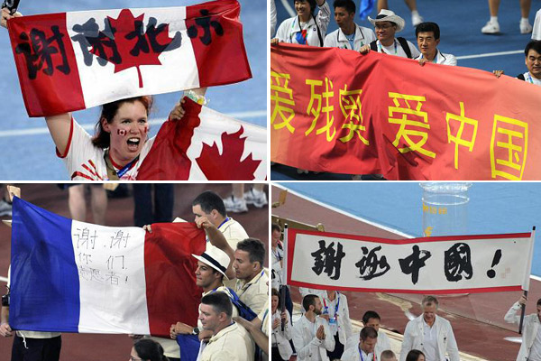 北京殘奧會(huì)閉幕式于十七日晚八時(shí)在殘奧會(huì)主體育場“鳥巢”開始,在充滿浪漫色彩和童話氛圍的文藝表演“寄往未來”后,國際殘奧委主席克雷文致辭,他對(duì)北京殘奧會(huì)給予高度評(píng)價(jià),稱是“有史以來最偉大的一屆殘奧會(huì)”,他代表所有殘奧大家庭成員,感謝北京奧組委,感謝殘奧會(huì)舉辦城市香港、青島、北京,感謝中國!