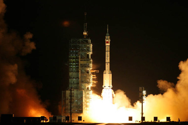 北京時間25日21時10分,中國自行研制的第三艘載人飛船神舟七號,在酒泉衛星發射中心載人航天發射場由“長征二號F”運載火箭發射升空。3名航天員翟志剛、劉伯明、景海鵬組成乘組執行飛行任務。27日下午16時43分左右,身著中國自行研制的第一套艙外航天服——“飛天”艙外航天服的航天員翟志剛順利出艙,成功實施中國首次空間出艙活動。28日17時37分,中國“神舟”七號飛船在內蒙古中部預定區域成功著陸。隨后,執行飛行任務的三位航天員安全出艙,中國神舟七號載人航天飛行獲得圓滿成功。
