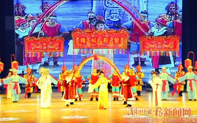 晚會的節目豐富多彩,緊隨潮州大鑼鼓之后的舞蹈《閨繡》,深刻而生動地演繹了潮州繡女的心靈手巧和婀娜多姿。潮州弦詩樂《浪淘沙》,讓觀眾領略到潮州音樂的細膩和悠婉;潮州細樂《湘橋夜話》,把工夫茶茶藝表演恰到好處地融入其中,讓悠揚潮樂中飄蕩著裊裊茶香;男女聲對唱《鳳凰山茶歌》,把畬族青年男女的熱情奔放的性情淋漓盡致地表達出來;潮州歌冊《潮州八景新唱》,則讓“老八景”唱出“新味道”。而潮曲表演《陳三五娘回潮州》,巧妙地讓陳三五娘這對古代眷侶回到“娘家”,一路行來處處感受著今日潮州城市面貌的深刻變化。在剛剛啟用的市文化藝術中心大劇院這個舞臺上,在五光十色的霓虹燈下,鄭舜英、唐龍通、許佳娜等潮劇名角和潮州市各演藝團體用精心排練的節目,把晚會的氣氛一次次推向高潮,也贏得了現場觀眾一陣陣熱烈的掌聲。(吳杰文)