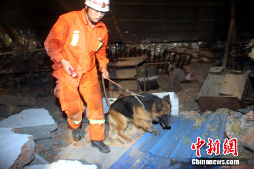 剛剛參加南平抗洪救災歸隊的搜救犬“叮當”又投入了新的戰(zhàn)斗,瓦礫上、縫隙中、樓板下“叮當”和其它5只“戰(zhàn)友”不停地穿梭搜索,與生命探測儀配合,準確定位了6處搜救點。