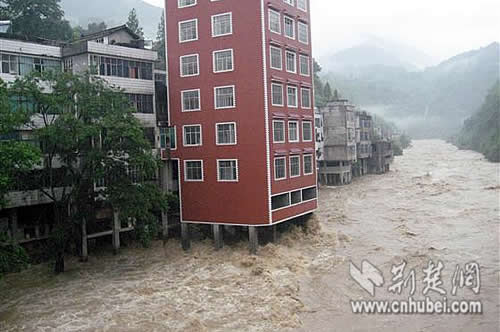 7月13日,有網(wǎng)友向荊楚網(wǎng)報料臺反映,恩施州鶴峰縣鐵爐鄉(xiāng)有人把房子建到了河道中,眼下正是主汛期,看著十分揪心。從該網(wǎng)友發(fā)來的照片上可以看到,一幢7層的樓房直接建在了河道當(dāng)中,與周圍兩棟4層白色建筑形成了鮮明的對比,顯得十分突兀。照片里,湍急的河水急速地沖刷著這棟違建房的支柱,水流幾乎沖到了房子的底板上。