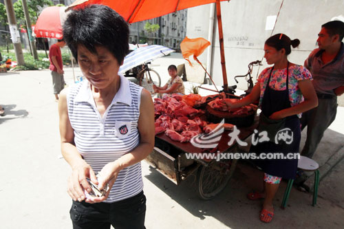 見胡某不肯就范,傳銷人員決定帶他去“聽課”。昨日,兩名男子帶胡某出門,胡某感覺逃跑機會來了。3人來到樓下,胡某假裝胃痛,要兩名男子幫他買牛奶。其中一名男子離開后,胡某立即跑到旁邊的豬肉攤,拿起切肉刀挾持了正在買肉的婦女。