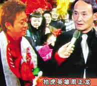別急,趙大叔的節目是余興,重頭戲在前面——那就是尋虎英雄周正龍現場接受采訪(貝克漢姆阿迪廣告版):