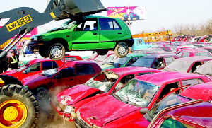 當(dāng)天,記者在銷毀現(xiàn)場看到,113輛等待銷毀的違規(guī)車輛列成4排,車輛中以夏利出租轎車居多。11時30分,在市城市交通局、烏魯木齊市客運統(tǒng)管辦相關(guān)領(lǐng)導(dǎo)的監(jiān)督下,一輛重型鏟車的鐵爪逐一砸向非法營運車輛,頃刻間車輛被壓癟成為一團(tuán)廢鐵,不到一小時,113輛非法營運車被全部銷毀。