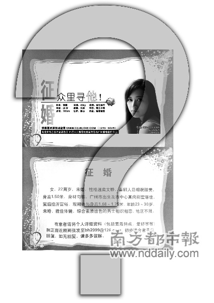 廣州一神秘富家女花50萬元登廣告征婚引爭議(圖)