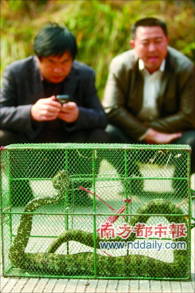廣東省專家15日確認(rèn),韶關(guān)三名護(hù)林員上周四捕到的一條蛇為珍稀物種莽山烙鐵頭。莽山烙鐵頭被稱為“蛇中熊貓”,全球僅存500余條。專家稱,若確為3人在韶關(guān)山區(qū)發(fā)現(xiàn),則是莽山烙鐵頭首次在中國(guó)湖南省以外地域被發(fā)現(xiàn),其意義可以與發(fā)現(xiàn)野生華南虎相提并論。