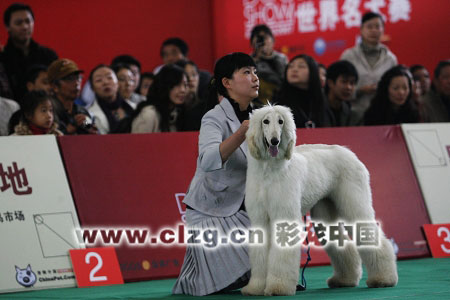 “跑一圈,看看跑步的步姿優不優美。”看到狗在賽場上跑圈后,來到審查員面前接受檢查。有專家解釋:比賽首先是進行目測,讓狗調整好姿態展示“曲線”,審查員從多個角度觀察;然后犬主帶著狗在場內跑動,裁判觀察狗的跑姿、服從程度。狗到裁判面前,裁判看狗的牙齒、咬合情況,并用手摸狗的全身,感覺狗的肌肉、骨骼、毛發,再探手到公狗腹下,檢查睪丸。如果狗兒不讓裁判看它的牙齒,將被扣分。裁判根據狗的綜合情況最后確定狗的冠、亞、季軍。