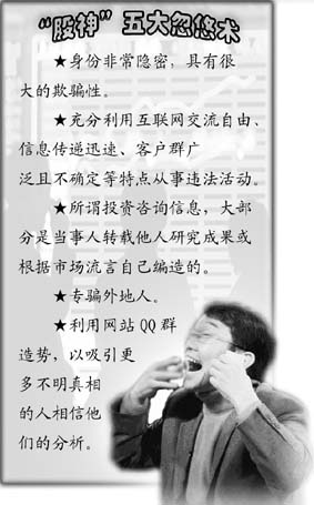 大多數(shù)迷信的股民交上了會(huì)費(fèi),聽信推薦后所購的股票卻紛紛被套。短短3個(gè)月,上當(dāng)?shù)墓擅襁_(dá)到1033人,交納的會(huì)費(fèi)達(dá)291萬元。