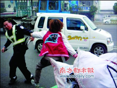 后來,她見沒有辦法阻止車被拖走,而我又堅持執法,干脆將外套脫下,往我的身上靠,說“你再說,我就告你強奸。”我被逼得往后退了幾十步,實在沒有辦法撥通了110的電話。
