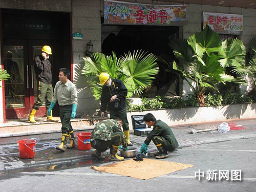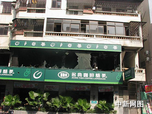 記者在現(xiàn)場看到,火災(zāi)現(xiàn)場已被警方封鎖,甚至在距離現(xiàn)場數(shù)百米遠(yuǎn)的路口警方也設(shè)置了警戒崗。發(fā)生火災(zāi)的名典西餐廳一片狼藉,西餐廳二樓的玻璃墻已全部破碎,餐廳里的沙發(fā)、桌子大部分被燒壞。此次火災(zāi)約三百三十平方米。