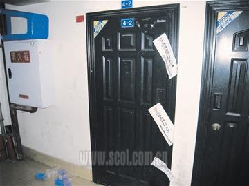 昨日下午5時,記者趕到萬盛區萬利花園,警方已經撤離了現場,去王家的樓道也解除了封鎖。不過,王家房門已經被公安機關查封,門上貼了數張蓋有當地派出所印章的封條,記者注意到,受害者隔壁一邱姓鄰居家,也一同被查封。另外一戶鄰居家也是鐵將軍把門。