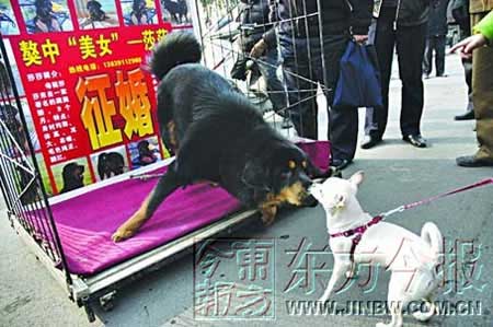 焦作市有一愛狗的市民,為了給自己的藏獒尋覓到一個“如意郎君”,下足了工夫,不但專門請人為愛犬拍了許多寫真集、制作了大幅宣傳畫,還在征婚現場為愛犬鋪上了紅地毯,這只母藏獒享受的級別那是相當高。