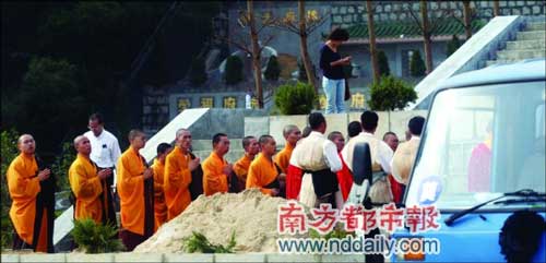 從昨天下午2時30分起,近50位僧人道士就一直在墓地現場念經。