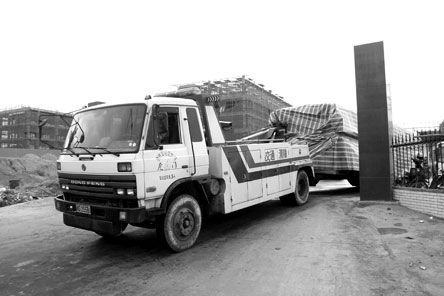 昨天早上約9時30分,多家媒體記者趕到現場,當記者表明身份想進入停車場采訪,兩名自稱為該停車場的工作人員將記者攔在門外,說是領導指示不能讓人進入,讓記者離開。記者后看到有一輛交通清障車拖著一塑料布包裹嚴實的物體離開,記者準備拍照,其中一男子試圖用手阻擋。