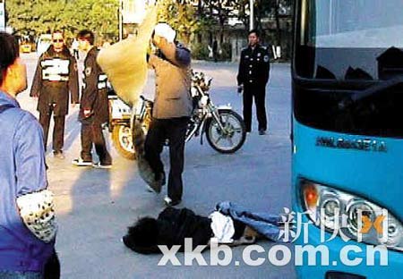 目擊:大巴車夾死一搶匪