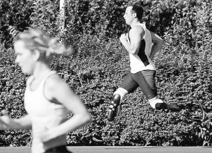 南非體育科學研究所的羅斯·塔克(RossTucker)持有類似觀點。他還指出義肢的另一特性:從來不會感到疲憊。不同于木腿簡單的支撐功能,在體重壓力作用下,運動義肢會在接觸地面時彎曲,然后在換步時彈開,從而把運動員垂直施與跑道的壓力轉(zhuǎn)化成水平方向的動力。