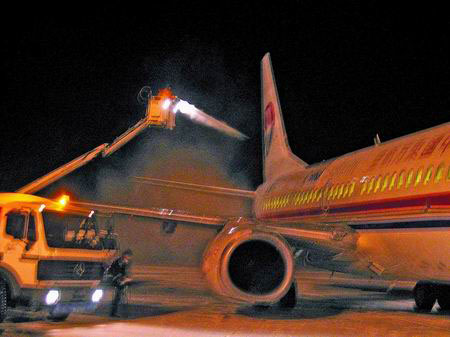 12日夜至13日凌晨,抓住老天爺休息的一小會兒,機(jī)場積極“反攻”,展開有史以來最大一次“破冰”作業(yè),本報記者對此進(jìn)行了全程追蹤。