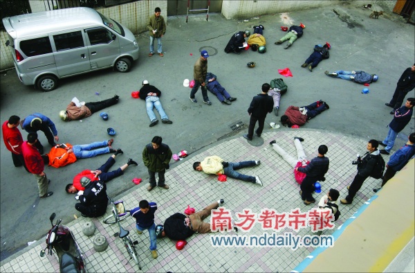 9時40分,裝扮成乘客的便衣警察從出口緩緩走出,“搭客仔”們跟往常一樣,圍住他們就要作案。“不許動,警察!”便衣警察大喝一聲,順勢制服一個作案嫌疑人。見到同伙被抓,其他“搭客仔”馬上四處逃竄,車站出口頓時一片混亂,站內(nèi)乘客都往外跑,外面路口的人卻擁過來看熱鬧。其中一名男子,飛奔中被便衣?lián)涞乖诘兀帜_朝天還想反抗,被其他趕上來的便衣合力制服。幾分鐘后,14名涉嫌盜搶的“搭客仔”都趴在了地上。