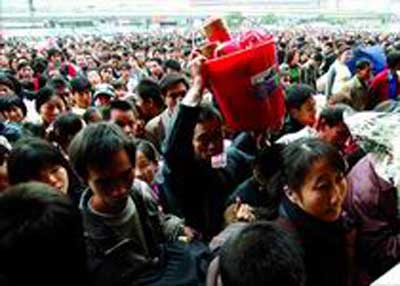 對此,廣鐵有關負責人解釋說,一趟列車的運輸能力僅為1200人(有座)左右,春運期間,由于電話訂票、窗口售票、代售點訂票等各種售票方式都在同時運行,相當于同一時刻有幾千個“窗口”在競爭同一車次的1200張票,加上規定每人每次可購車票3張,400多人就可以買完一趟火車的全部車票。供求嚴重不對等,兩個數字比較下來,排在窗口第一個卻買不到票也就完全有可能。