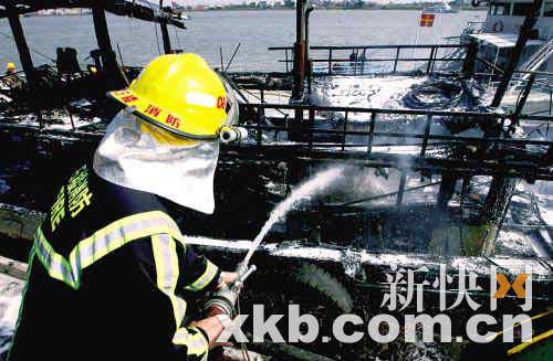 據了解,起火漁船為粵番禺01022號,596匹馬力,載重142噸,船主郭旺娣是石樓鎮群星村人,于前日出;氐缴徎ㄉ綕O港碼頭。“這艘船上裝有7噸柴油。”一消防員介紹,他們趕到時該船正順著流水由北往南漂。“它當時是邊燒邊漂,船上一片火海,連桅桿那么高的地方都燒起來了!