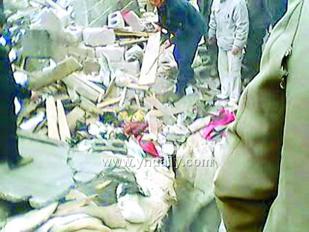 “太嚇人了!”據與爆炸樓房只有一墻之隔的汪女士回憶,上午10時30分左右,“嘭”的一聲爆炸聲響后,她家的電視突然失去信號,還晃動著要從柜臺上掉下來,她趕緊伸手把電視扶住,隨后,屋里一片漆黑,滿是嗆人的煙塵,她出門一看,看見丈夫申開能在屋外像木樁子一樣地呆呆站著,木板、竹竿、瓦礫、水泥渣等雜物不停地在他的周圍掉落下來。見此,她連忙把丈夫拉進屋里,才脫離了危險。隨后,聞訊趕來的左鄰右舍們還發現,在離爆炸地點200米左右的地里和小路上,還能看見被炸飛的帶血肉塊,村里一些老人看后也禁不住傷心落淚起來:“太慘了!太慘了……”