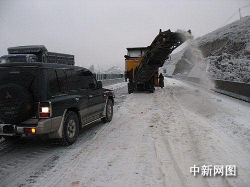 中新網(wǎng)韶關(guān)1月29日電 嶺南寫真:廣東京珠北冰雪封路見聞