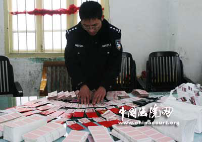 2月3日10時,平頭再次進入瑤臺村××號。15分鐘后,偵查員小王肩扛一桶純凈水敲開了門。開門的是那少年,看上去只有14歲左右。小王一眼瞧見客廳的茶幾上堆滿了車票和紅包,地板上擺放有打印機、裁紙刀……小王大聲咳嗽了一聲,控制住了少年,守候在外門邊的偵查員聞聲一擁而入,控制了所有的出口。在該房子的兩個臥室內,分別抓獲了正在睡覺的平頭和女子。偵查員當場從室內搜出電腦4臺、打印機2臺,裁紙刀一臺,假票5萬余張,用于制作假票用的車票模版票集4本。經審查,平頭為封某、女子為谷某、少年為王某。